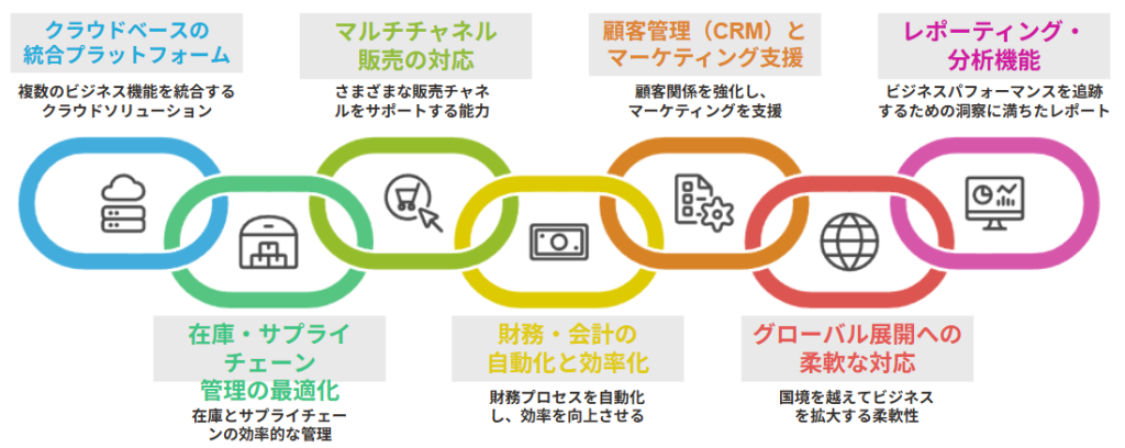 ERPでは、AI、自動化、リアルタイム分析など多彩な機能を備え、業務の効率化を実現します。